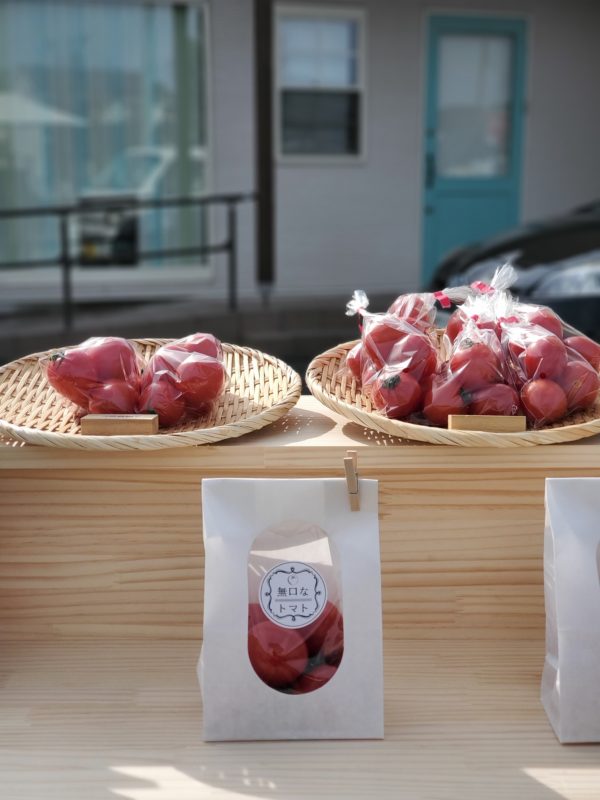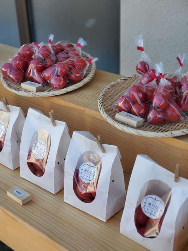 中玉トマトとミニトマトの無人販売です。